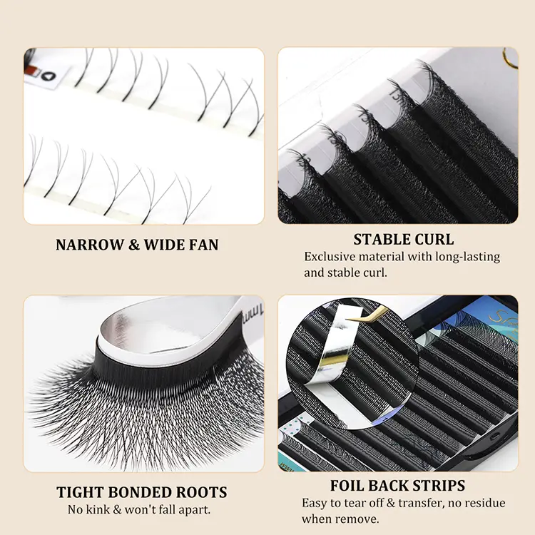 Durevole e fermo: Rispetto alle ciglia singole, il lungo design dello stelo delle ciglia pre fioritura a forma di W può aumentare l'area di contatto con ciglia naturali, fornendo un'adesione e una durata più forti.