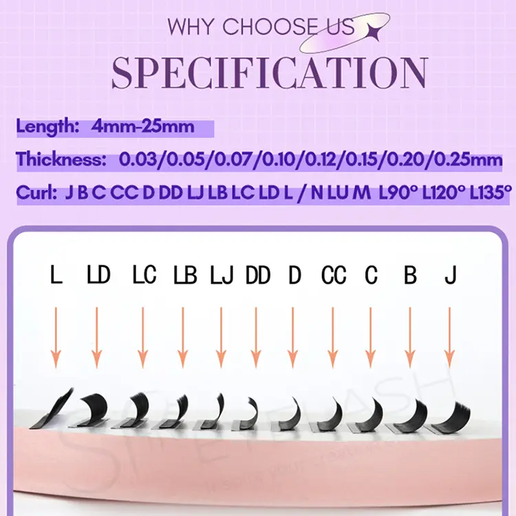 Ogni ciglia è progettata per facilità d'uso, caratterizzata da una base pulita senza residui adesivi e un supporto per fogli che è facile da staccare. Ciò rende la ventola particolarmente semplice, soprattutto per spessori di 0,03-0,07 mm utilizzati per l'espansione del volume. Il curling può durare per oltre un anno in un ambiente di 20-25 ° C, garantendo effetti di lunga durata. Sia che tu stia creando un aspetto classico o perseguendo una grande capacità, le ciglia SP possono fornire la flessibilità di cui hai bisogno.