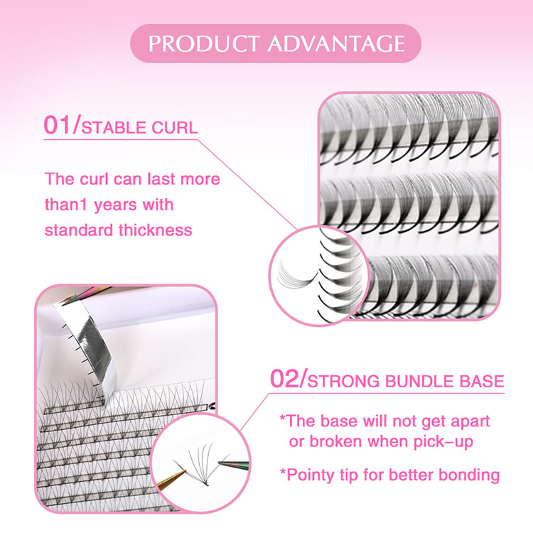 I ventilatori di Promorce Stresh SP SP sono realizzati con materiale PBT di alta qualità e subiscono un'ispezione manuale al 100% prima di essere lanciati per garantire che le ciglia non si rompano. Il design dello stelo della punta del fiore stretto migliora ulteriormente la praticità. Fornisce un'area di legame più ampia, garantendo un'eccellente durata. Lo spessore varia da 0,03 a 0,07 mm, con riccioli C, D, M, J e L e gli stili personalizzati possono essere creati per ciascun cliente.